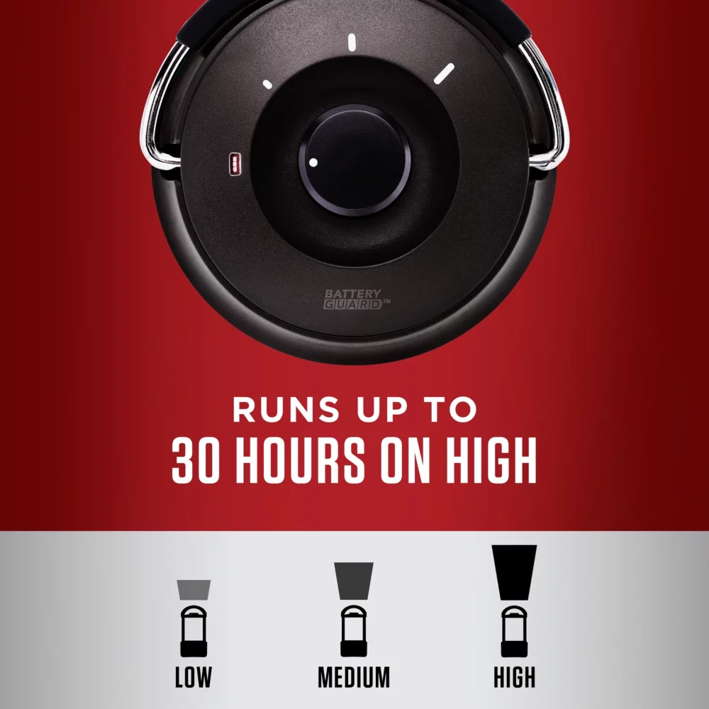 The Coleman® 800 Lumens LED Lantern with BatteryGuard™ stops battery drain, so you’ll have power when you need it most. Switching off the lantern automatically disengages batteries from the circuit to extend battery life by up to 25%. No matter the situation, from power outages to evenings by the lake, your lantern will be ready for anything, even when you’re not.