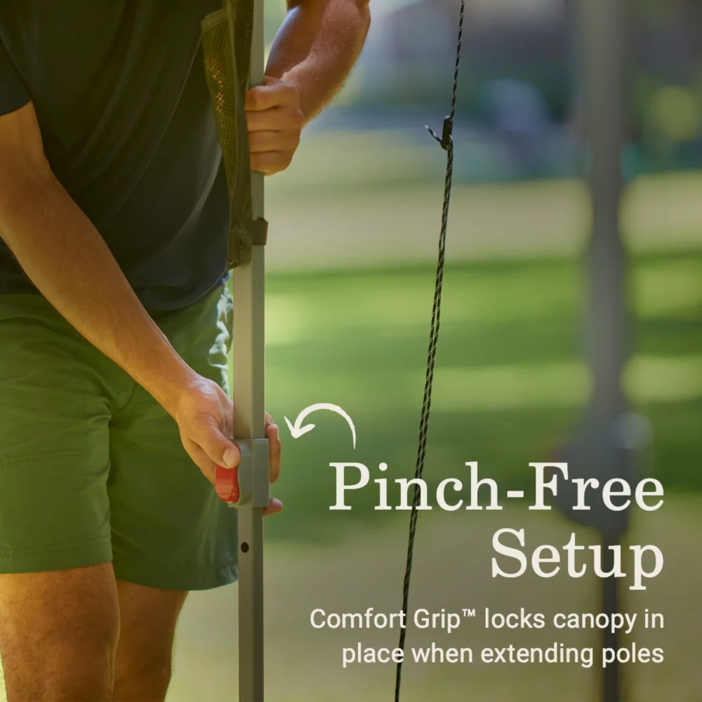 • PINCH-FREE SETUP & TAKEDOWN: Comfort Grip™ features easy-to-use buttons for locking the poles in place when setting up or taking down